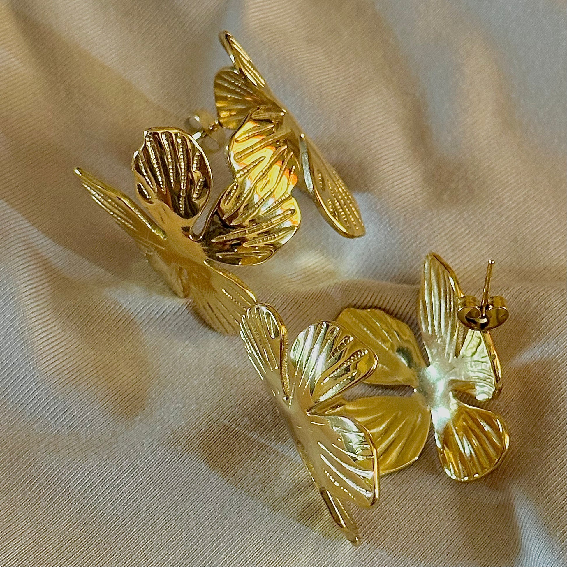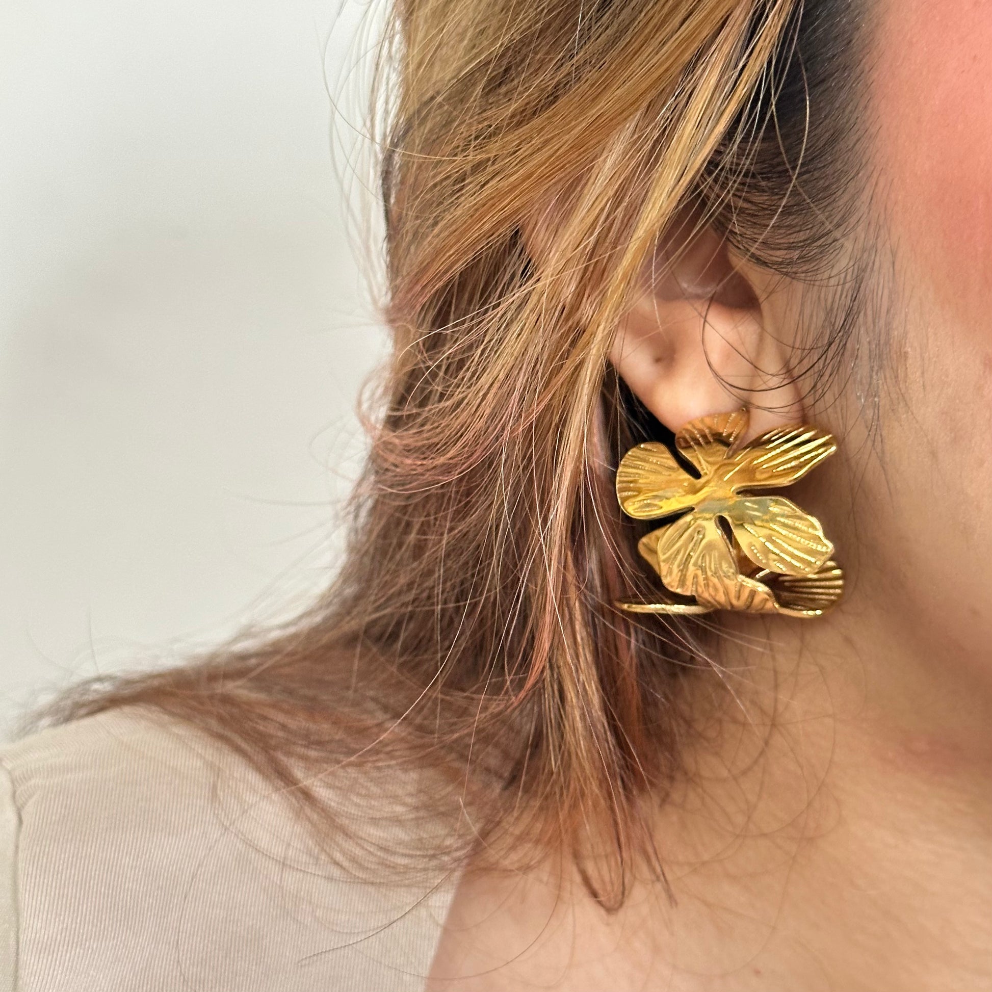 Kishara’s OVERSIZED FLORAL HOOPS which is Anti tarnish , waterproof and for everyday wear.
