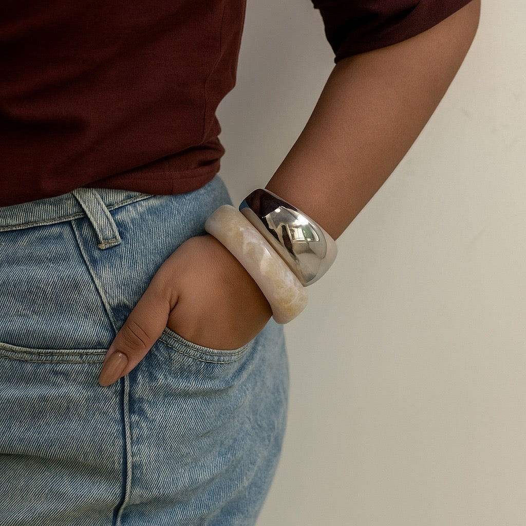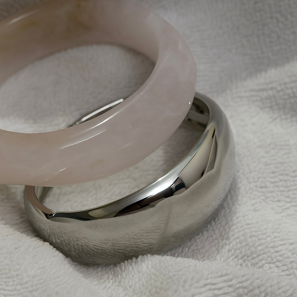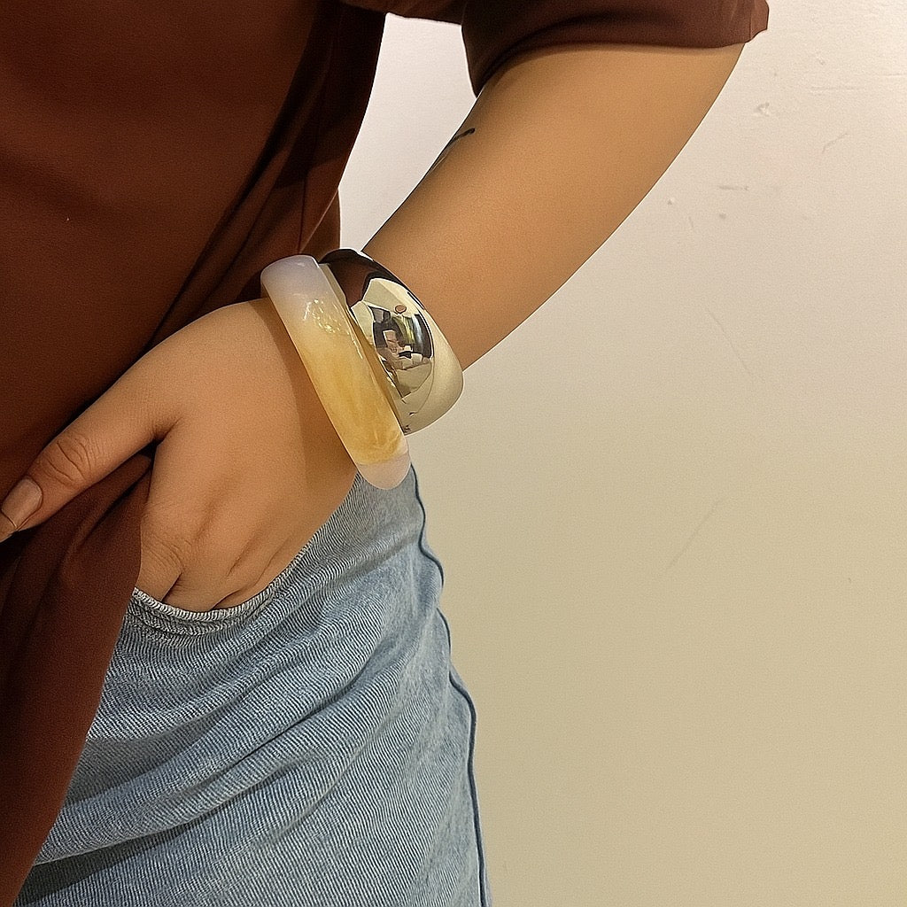 Consists f 2 kada : 1 resin kada and one thick thin silver kada