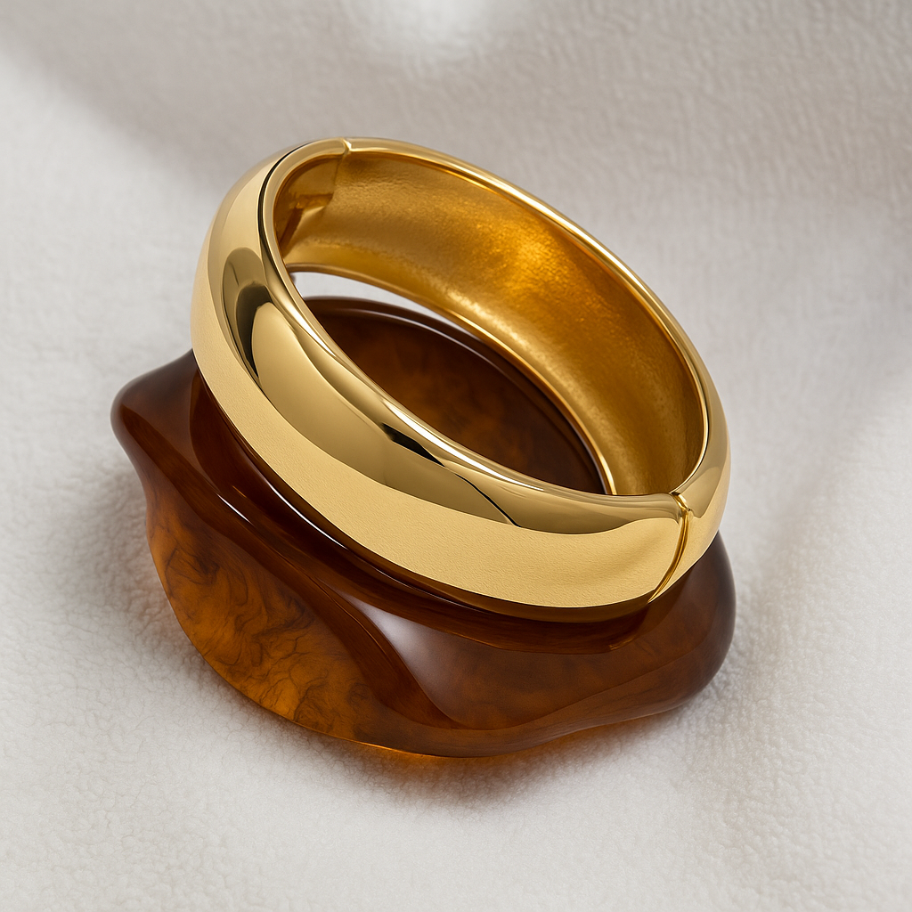 CONSISTS OF 2 BRACELET : 1 RESIN AND 1 THIC GOLD