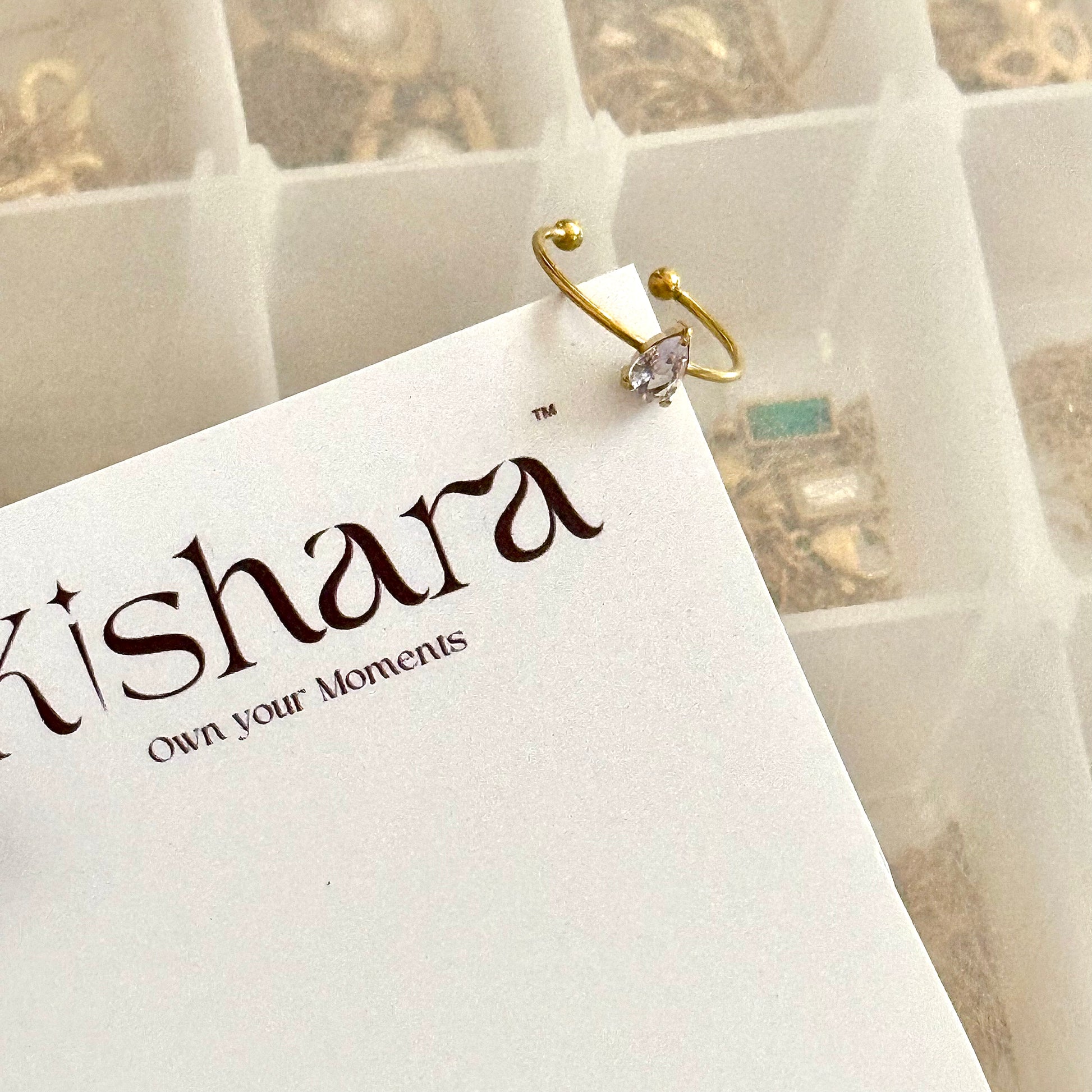 Kishara’s TEAR DROP ADJUSTABLE PROMIS RING which is Anti tarnish , waterproof and for everyday wear.