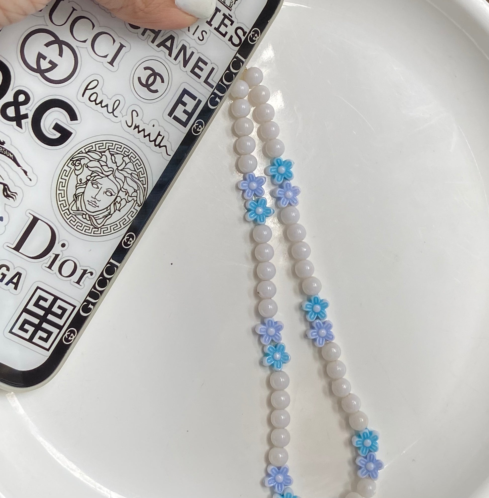 White PhoneCharm with blue flowers